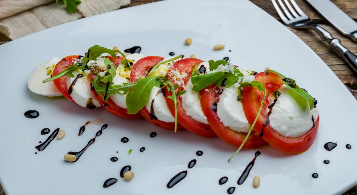 Second, we need to review a sample menu item and list its ingredients, let’s go with a caprese salad: